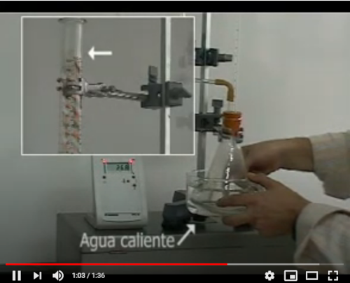 matraz erlenmeyer sumergiéndolo en agua