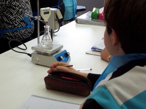 coloca en un erlenmeyer en el que se introduce un termómetro. Para