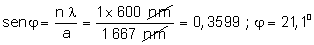 expresión anterior. Por ejemplo, una luz amarilla de longitud de onda 600 nm se observaría para un ángulo de: