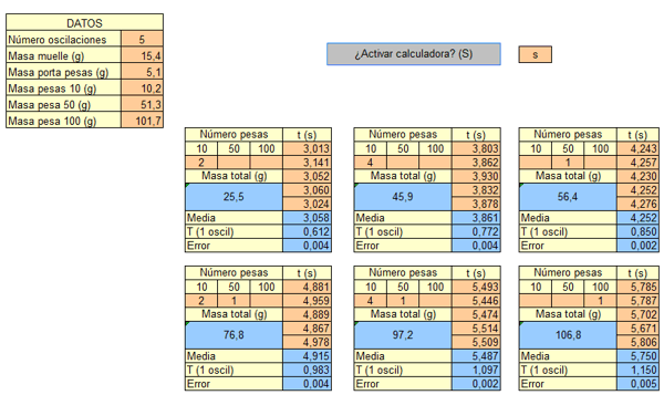Como se refleja en los datos se han usado cuatro pesas de 10 y se ha