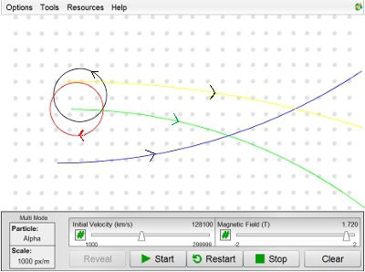 (positrón, protón, partícula alfa) curvan su trayectoria (al estar