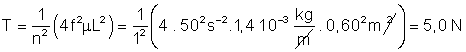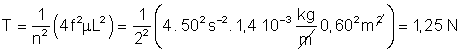 aparecerá cuando n = 2. La tensión que deberá darse a la cuerda será