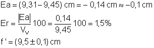 de la imagen medido y el calculado (tamaño del objeto 1,0 cm) según: