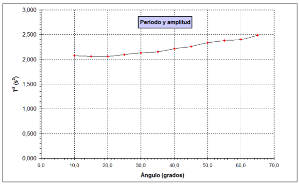 cuadrado del periodo (T2) frente al ángulo en grados. El