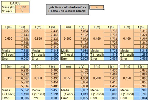 contar el tiempo que tarda el péndulo en dar 5 oscilaciones.