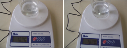 Comenzamos, por tanto, pesando 100,0 g de cada una de las disoluciones.