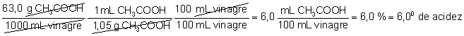 concentración en % en masa necesitamos saber la densidad del vinagre. Como