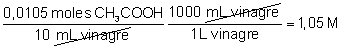 ácido acético. Como esa cantidad estaba en un volumen de 10,0 mL de
