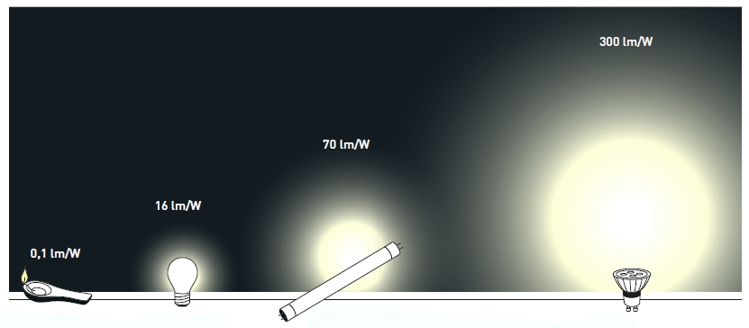 watios). El récord actual está en unos 300 lm/W. Las lámparas de
