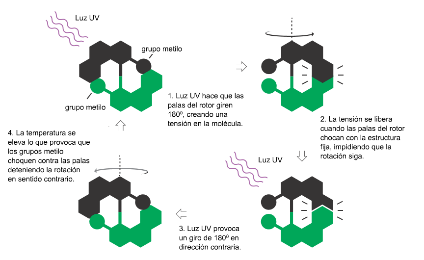 izquierda. Pero Ben Feringa diseñó una molécula que girara